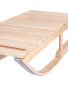 Конструкция выполнена из натурального материала, который отличается прочностью, долговечностью и гипоаллергенностью. Удобное эргономичное сиденье с адаптируемой спинкой под рост ребенка обеспечивает комфорт при длительных прогулках. Легкость конструкции позволяет легко переносить санки вручную, а компактные размеры делают их удобными для хранения дома.